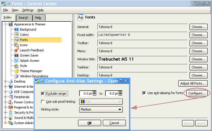 Figure 1. General KDE font configuration