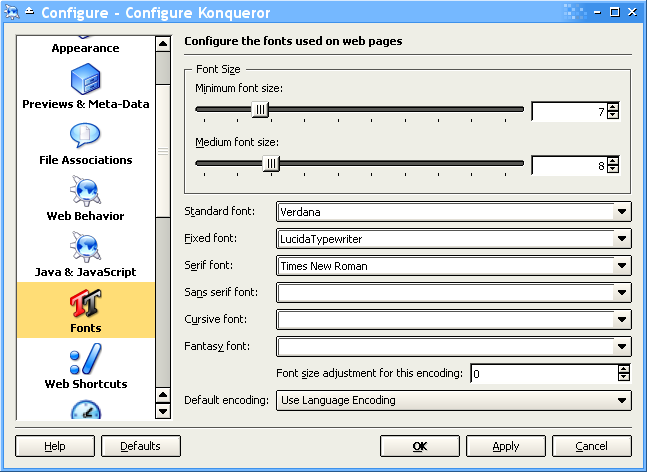 Figure 3. Konqueror Web Browsing font configuration
