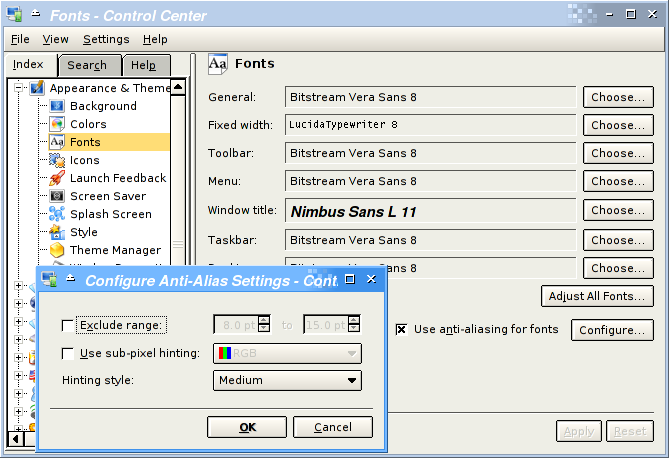 Figure 4. Gnome Font Configurations