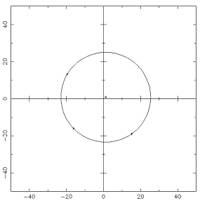 Dibujamos el círculo con la rutina mostrada anteriormente, "PGCIRC". Podemos limpiar el círculo predibujado y asignar los puntos desde el principio para dibujar otro círculo en el mismo área de dibujado. El código completo está incluído en las referencias (ver Ref. circle.f).